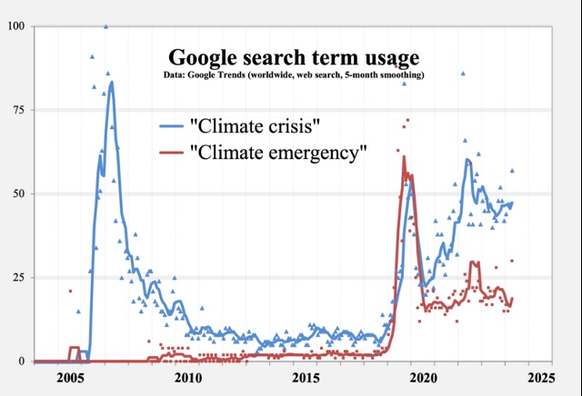 Gambar 1. Jumlah pencarian 'climate crisis' dan 'climate emergency'