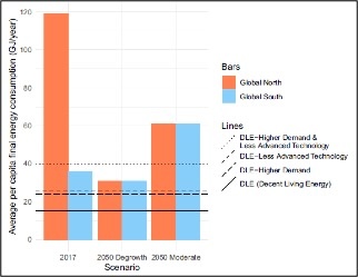 Gambar 3. Distribusi energi berdasarkan skenario degrowth dan moderat (Keyßer and Lenzen 2021)