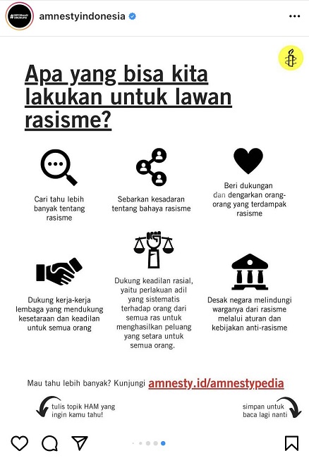By contrast, the Racial Discrimination Law - the only law that specifically targets racism, has only been used to prosecute a handful of people, several of whom are themselves members of minority groups, as in the case of Veronica Koman and that of ethnic-Chinese politician Bobby Jayanto, who was accused to have called non-Chinese Indonesians 'black-skinned', although his case was later dropped. National Human Rights Commission member Choirul Anam said in an online discussion last year that there has yet to be a single conviction under the law.