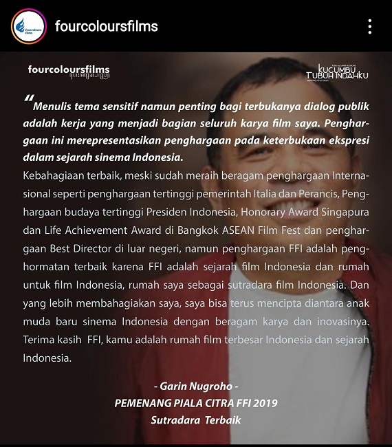 Contoh yang terbaru adalah film Garin Nugroho Kucumbu Tubuh Indahku (2018) yang dilarang di lima kota, antara lain Depok, Kubu Raya, Pontianak, Palembang, dan Riau. Pemerintah Depok di Jawa Barat meminta agar film tersebut segera dilarang karena menampilkan 'tindakan seksual menyimpang dan penistaan agama', sementara pemerintah Palembang di Sumatera Selatan mengatakan film tersebut 'memasukkan konten negatif yang kemungkinan besar akan memengaruhi generasi muda.' Menanggapi hal tersebut, Garin Nugroho dan perusahaan produksi Four Colours Films terlibat dalam kampanye media untuk melawan klaim tersebut dan membuka dialog.