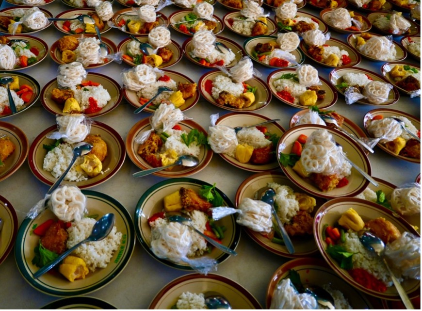 The mosque began offering free buka puasa meals in the year 2000. At that time, it prepared approximately 500 meals per day. The scale of the program has gradually increased to the current level of 3,500 to 3,800 per day, for a total of 105,000 to 114,000 meals across the fasting period. This is a costly, efficient and well managed operation. The total cost is approximately 1.5 billion rupiah or $US90,500.